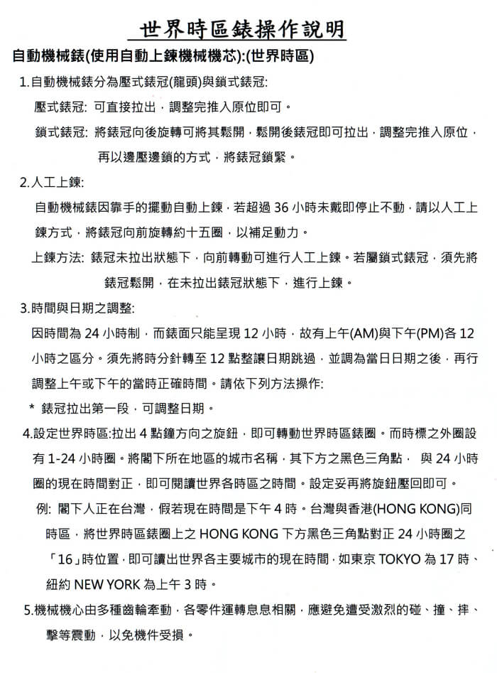 - 配件:錶盒x1、品牌保卡套x1、品牌保卡x1、操作說明卡x1、中文保證卡x1
