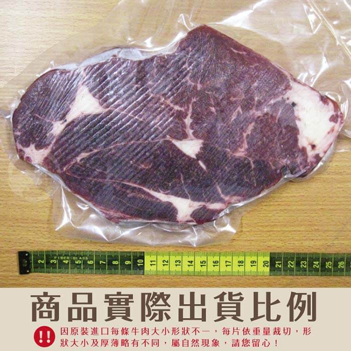 - 主商品:澳洲黑牛濕式熟成藍鑽超大沙朗牛排5片組(450公克/1片)