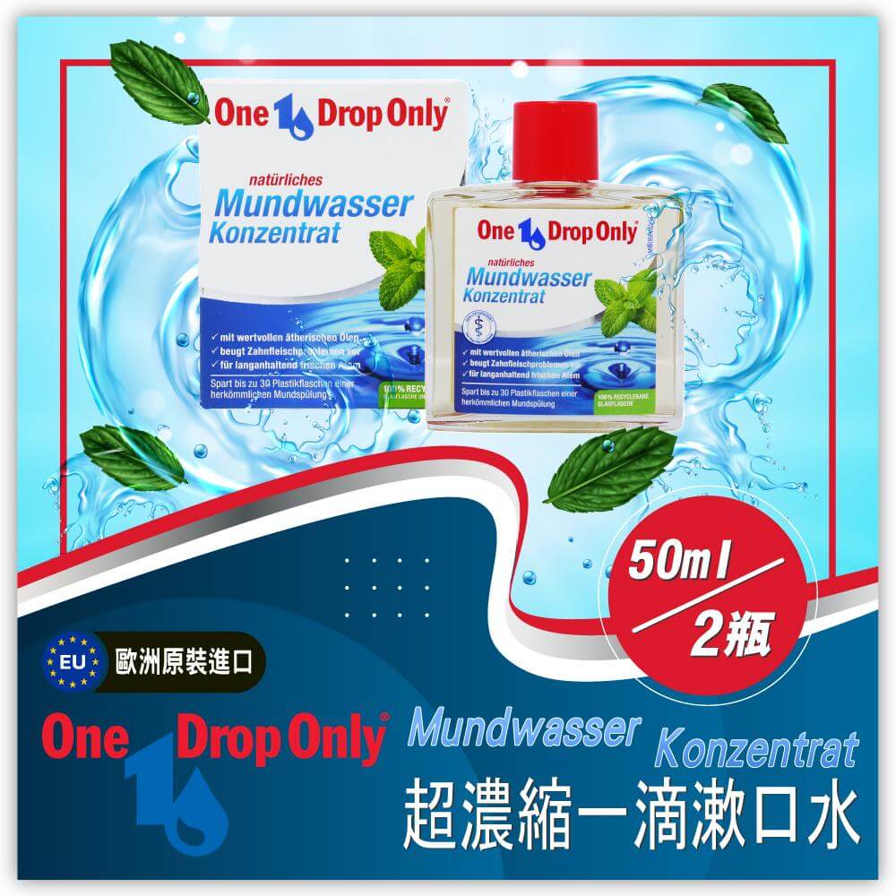 - 主商品:ONE-DROP-ONLY 一滴淨漱口水 50ML* 二入 產地:德國 用途:清潔口腔、口氣清新。 容量:50ml *2入 使用方法: 每次以一滴加入15ml清水即可,後於口中潄口並停留至少30秒,再吐出,每日2-3次。 保存方法:置於室溫陰涼乾燥處。 保存期限:5年 有效日期:2027.07(開封後12個月使用完畢) 💛💛旅行外出,上班族餐後的好幫手,小小一瓶,隨身好攜帶,讓您口氣清新🧡🧡