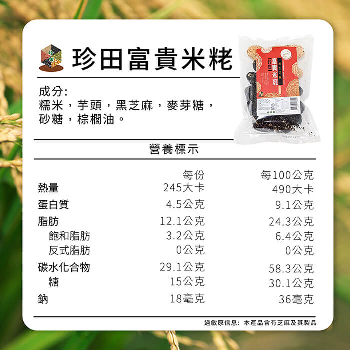 - 主商品:珍田富貴米荖-養生芝麻,6入組
