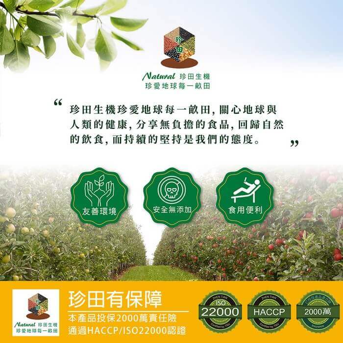 - 主商品尺寸/規格/重量:品名: 珍田生機 內容物名稱: 珍田南瓜子酥 內容量:120g±4.5%/包 原產地: 台灣 保存期限: 5個月 製造廠商或國內負責廠商名稱: 華宥企業有限公司 製造廠商或國內負責廠商電話:03-3771719 製造廠商或國內負責廠商地址: 桃園市八德區和平路772巷16號 投保產品責任險字號:60-113-06976120-00014-PDL 食品業者登錄字號:H-125193258-00000-0 品名: 珍田生機 內容物名稱: 珍田綜合莓果堅果酥 內容量:120g±4.5%/包 原產地: 台灣 保存期限: 5個月 製造廠商或國內負責廠商名稱: 華宥企業有限公司 製造廠商或國內負責廠商電話:03-3771719 製造廠商或國內負責廠商地址: 桃園市八德區和平路772巷16號 投保產品責任險字號:60-113-06976120-00014-PDL 食品業者登錄字號:H-125193258-00000-0 ================================================ 品名: 珍田生機 內容物名稱: 珍田莓果杏仁千層 內容量:120g±4.5%/包 原產地: 台灣 保存期限: 5個月 製造廠商或國內負責廠商名稱: 華宥企業有限公司 製造廠商或國內負責廠商電話:03-3771719 製造廠商或國內負責廠商地址: 桃園市八德區和平路772巷16號 投保產品責任險字號:60-113-06976120-00014-PDL 食品業者登錄字號:H-125193258-00000-0