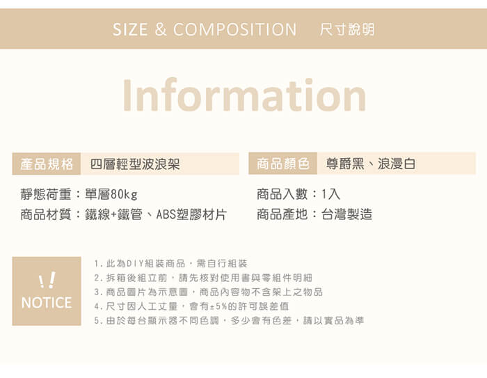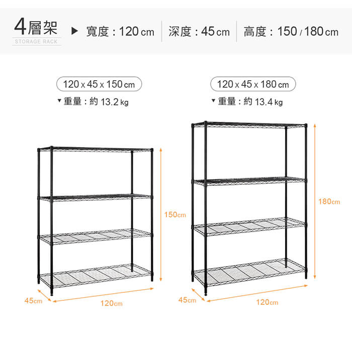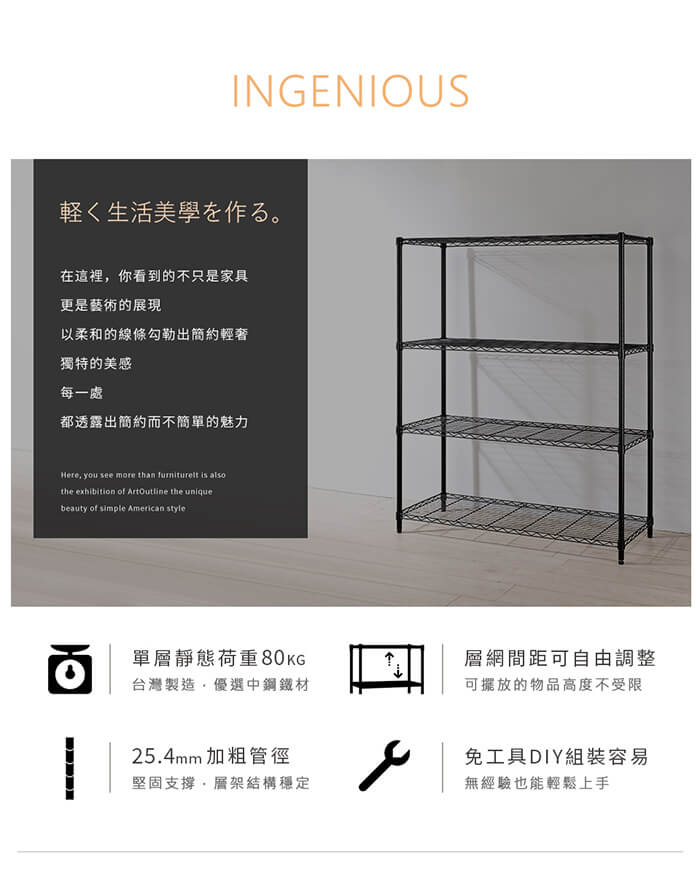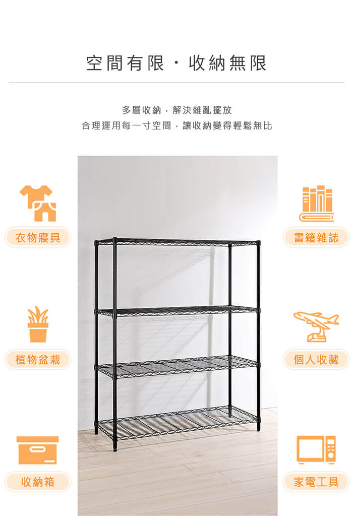 - 主商品:【AAA】MIT輕型四層烤漆波浪架 120x45x150cm - 2色可選