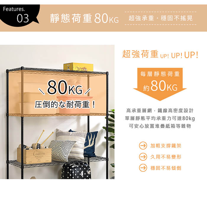 單層靜態平均荷重可達80kg。