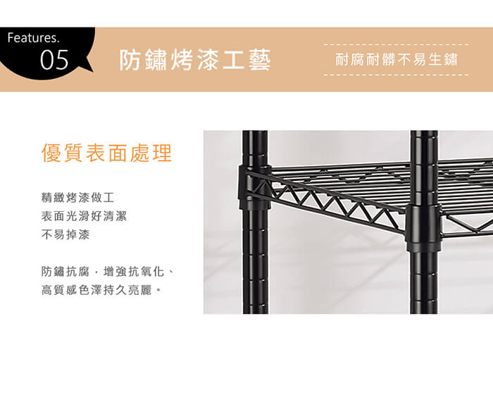 烤漆做工,色澤明亮、防鏽抗腐蝕。