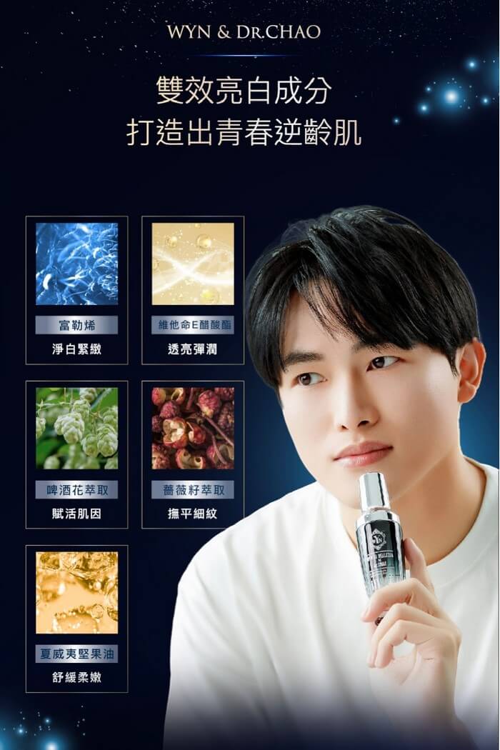 - 材質/食材:雙重亮白精華(III) 產品成分: 澳洲堅果油、沒藥醇、維生素 E 醋酸酯、狗牙薔薇籽萃取、(油性)印度戕扣萃取、啤酒花萃取(奇肌光因子)、水溶性富勒烯、葡聚醣保濕因子 (詳情配方請參閱盒身標誌) WYN & Dr.CHAO 金鈕扣 +A 醇精華 產品成分: 夏威夷堅果油、維他命E醋酸酯、摩洛哥堅果油、向日葵油、A醇(油性)、印度金扣萃取(詳情配方請參閱盒身標誌)