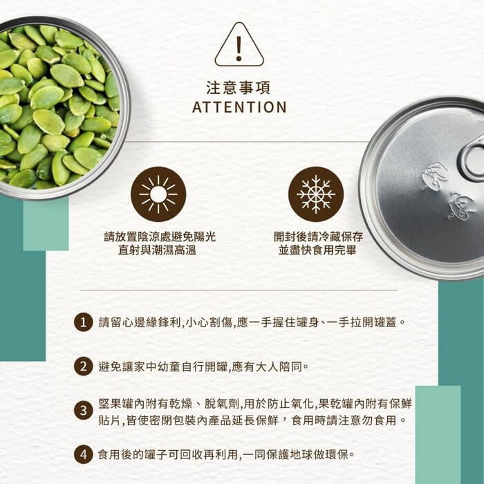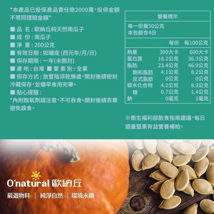 - 主商品:【Onatural 歐納丘 】 純天然南瓜子(200g/罐)3罐組