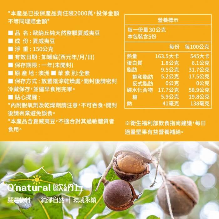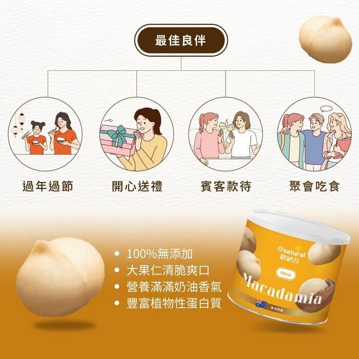 - 主商品:【Onatural 歐納丘 】純天然整顆夏威夷豆(150g/罐)3罐組