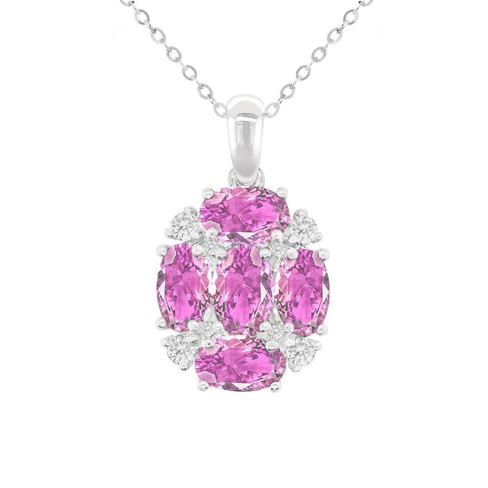 - 主商品尺寸/規格/重量:墜台材質:PT900 主石:粉紅剛玉x5粒 重量:2.50克拉(含)以上 形狀:橢圓形 配鑽:培育鑽石,約0.15克拉 PT950鍊:16吋及18吋【可調節】 重量:2g(含)以上(已鑲件)