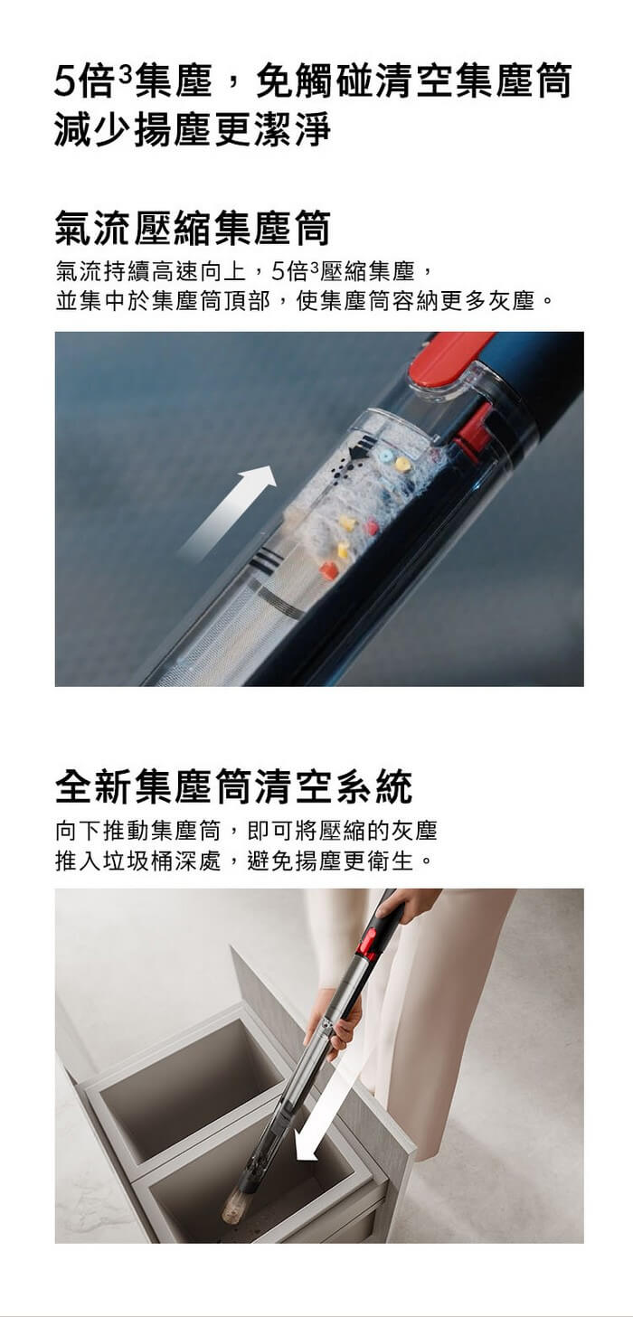 免觸碰清空集塵筒,雙向光學探測, 灰塵清晰可見。
