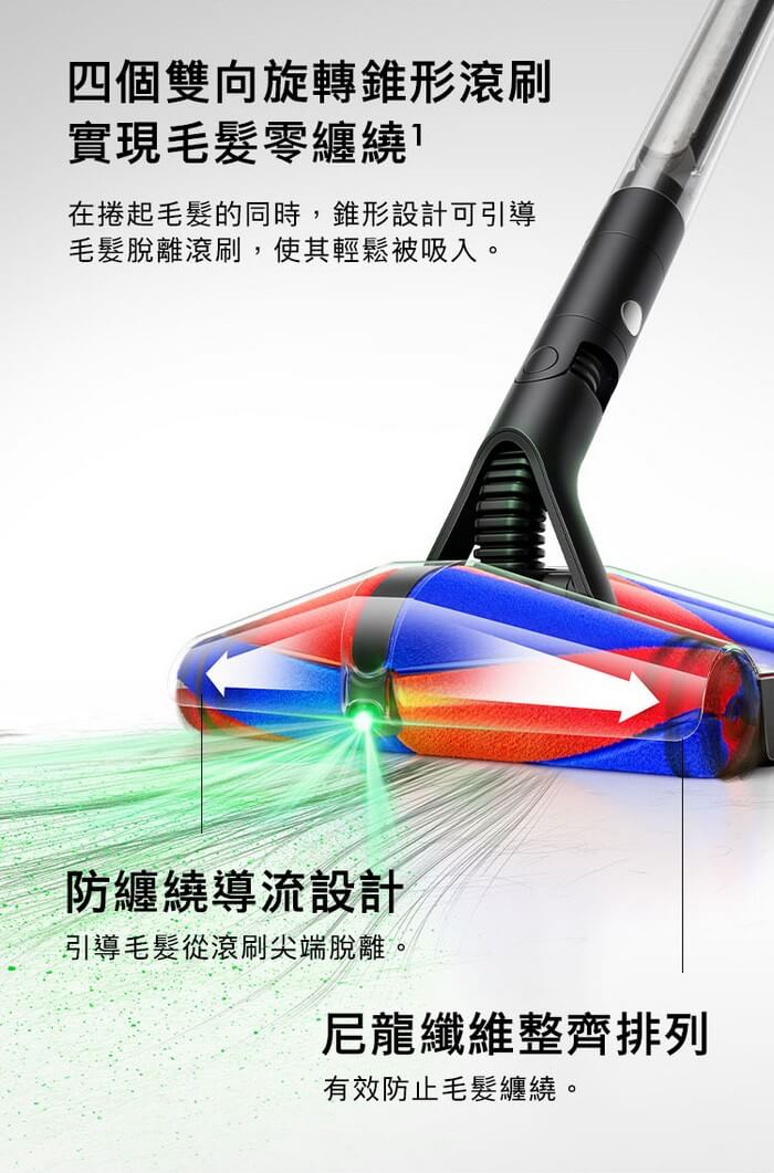 Fluffycones 四錐全向吸頭,毛髮零纏繞。