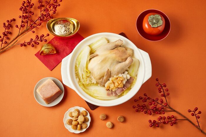 - 材質/食材:雞高湯(水、雞骨(產地:台灣)、豬大骨(產地:台灣)、濃缩鮮雞汁(水、鹽、雞肉萃取物(雞肉萃取物、鹽)、L-麩酸鈉、糖、雞油、酵母萃取物(酵母萃取物、鹽)、乙醯化己二酸二澱粉、香料、調味劑(5’-次黃嘌呤核苷磷酸二鈉、5'-鳥嘌呤核苷磷酸二鈉))、明膠(來源:豬皮萃取物)、玉米糖膠、B-胡蘿蔔素(麥芽糊精、辛烯基丁二酸鈉澱粉、葵花籽油、抗氧化劑(L-抗壞血酸鈉、維生素C、維生素E)、B-胡蘿蔔素))、小土雞、娃娃菜、珠貝、干貝、金華火腿(豬肉(產地:台灣)、精鹽、亞硝酸鈉(0.07g/kg以下))、糖、鹽。