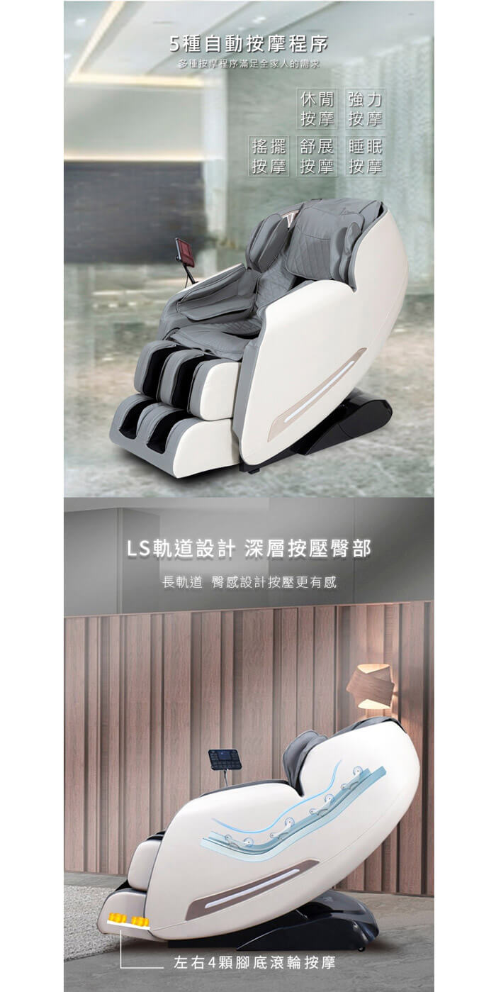 6種按摩技法,5種自動按摩程序。