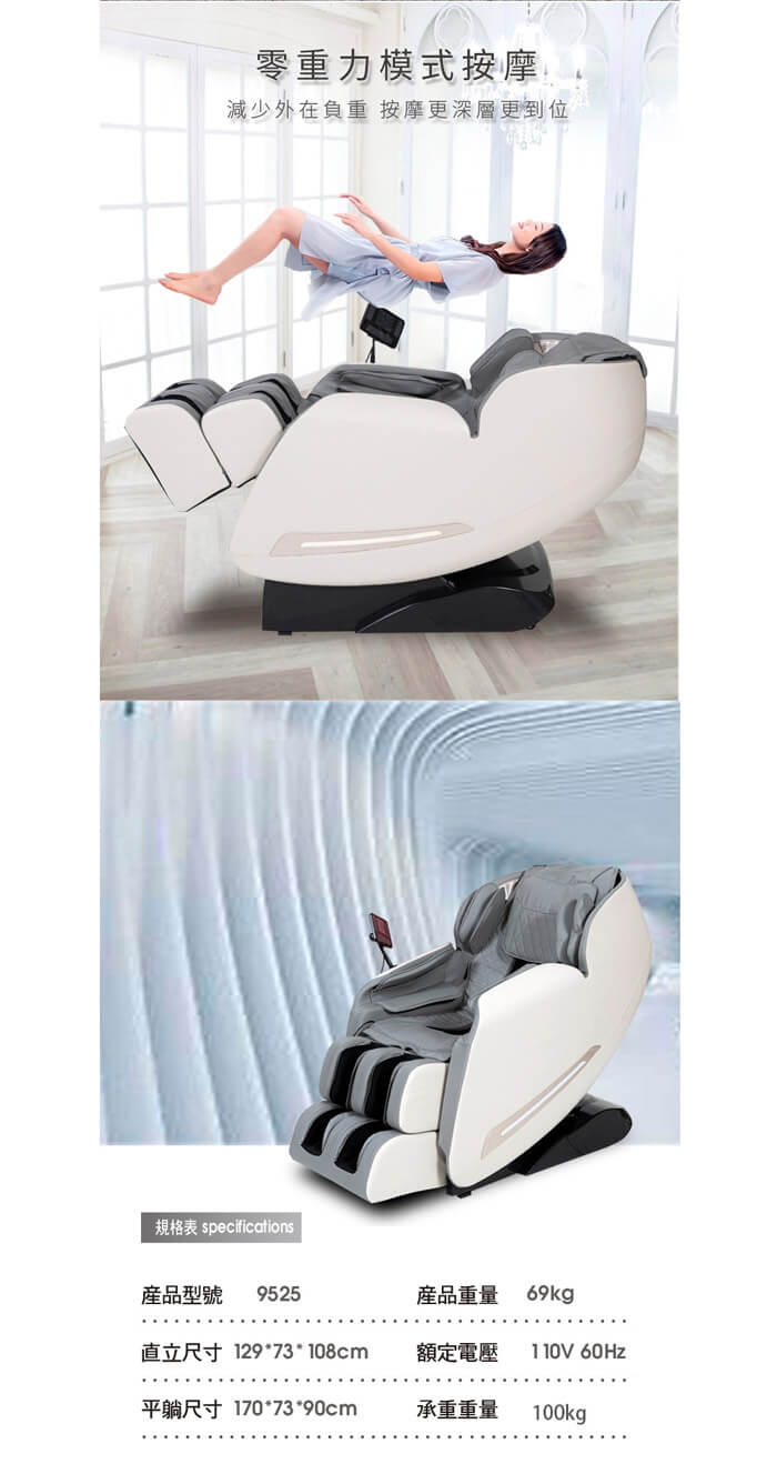 - 主商品尺寸/規格/重量/密度:直立 129*73*108公分 躺臥 170*73*90公分 淨重: 69kg 電源電壓:110V/60Hz