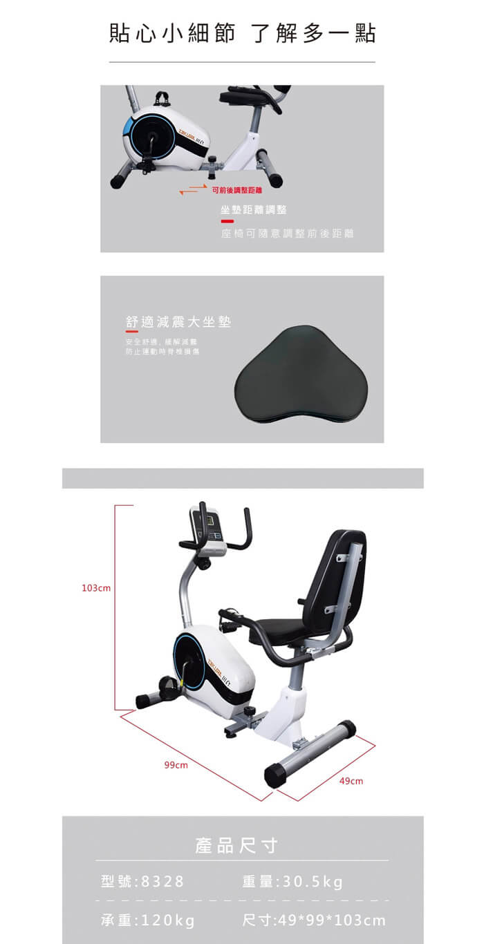 - 主商品尺寸/規格/重量/密度:尺寸:99*49*103公分 產品淨重:30.5公斤 可承載重量:110公斤 電源電壓:110V/60Hz