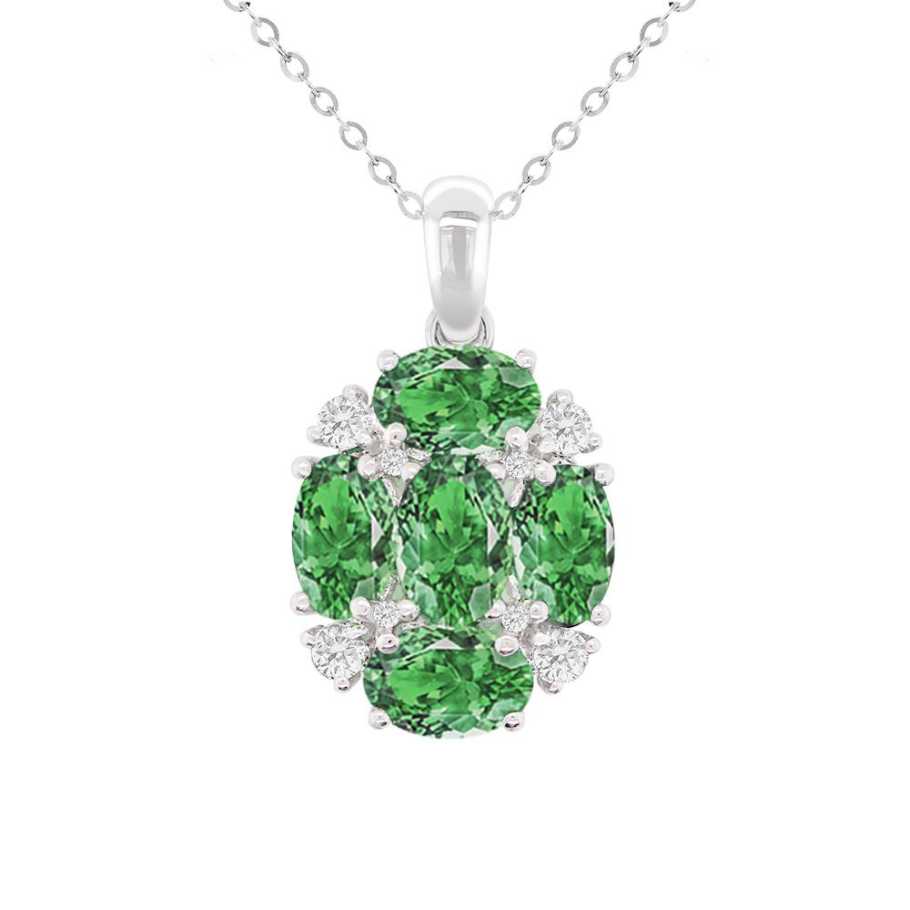 - 主商品尺寸/規格/重量:墜台材質:PT900 主石:沙佛萊石x5粒 重量:2.50克拉(含)以上 形狀:橢圓形 配鑽:培育鑽石,約0.15克拉 PT950鍊:16吋及18吋【可調節】 重量:2g(含)以上(已鑲件)