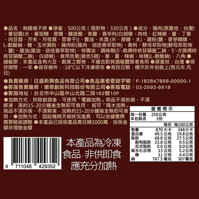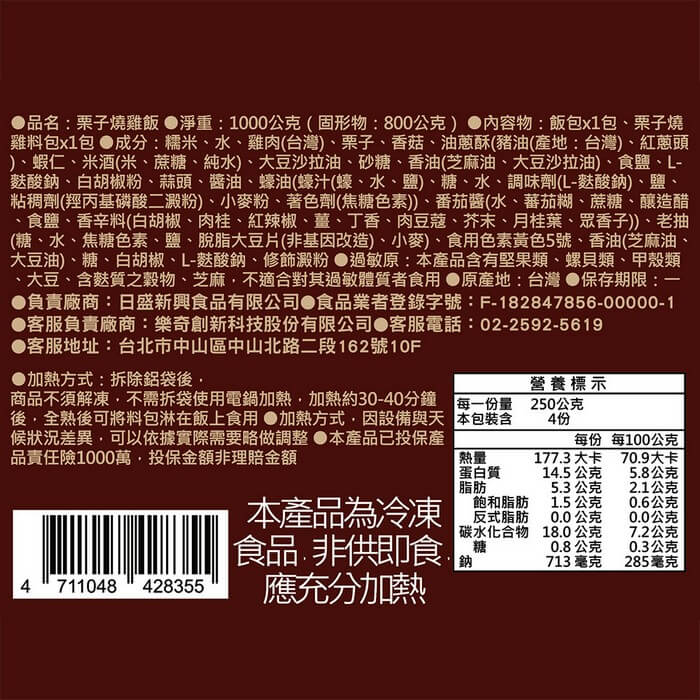 - 材質/食材:請詳閱商品敘述內文、商品營養標圖。