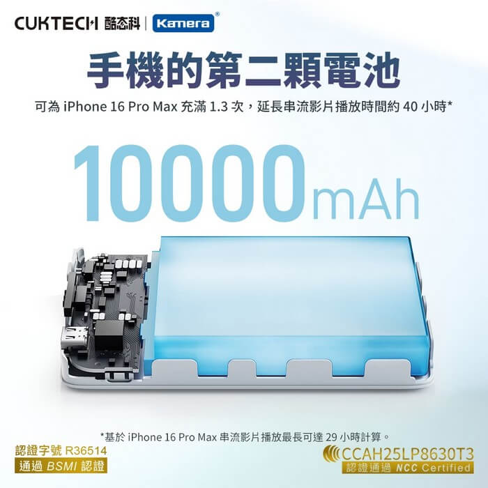 10000mAh 大容量設計。