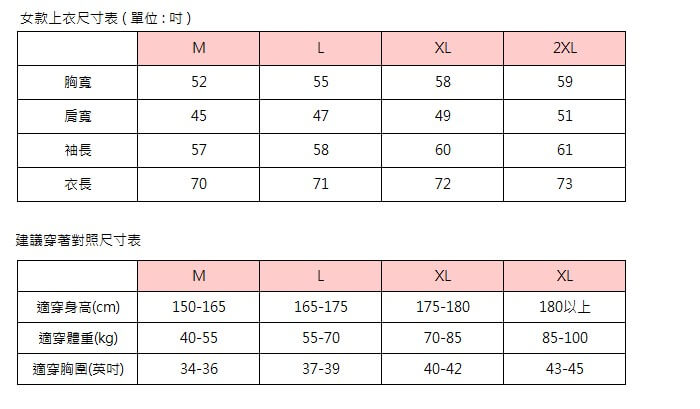- 主商品尺寸/規格/重量:M、L、XL、2XL