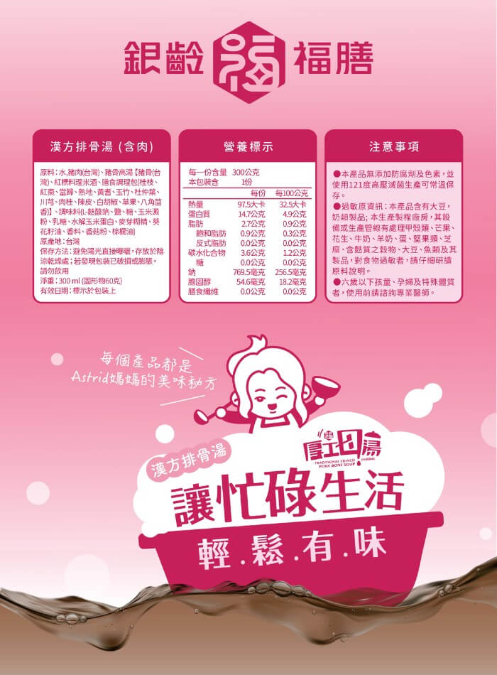 - 主商品:【銀齡福膳】漢方排骨湯(含肉)禮盒(6入)