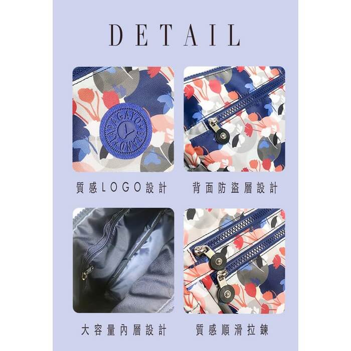 - 主商品尺寸/規格/重量:品名:多功能後背包 尺寸:長30cm x 底厚12cm x 高34cm 主夾層 1 內拉鍊袋2 內收納袋1 外拉鍊袋2 外收納袋 2 品名:多功能側肩背包 尺寸:長27cm x 底厚11cm x 高20cm 主夾層 1 內拉鍊袋1 外拉鍊袋3 外收納袋 2 品名:多功能化妝包 尺寸:長20cm x 底厚5cm x 高16cm 主夾層 1 內收納袋4 後背包-後背/單肩背/手提 側肩背包-斜背/側肩背包 化妝包-手拿