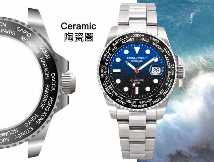 - 錶殼類別:實心不鏽鋼+不鏽鋼旋轉錶框+精密陶瓷圈口+不鏽鋼旋入式錶冠。