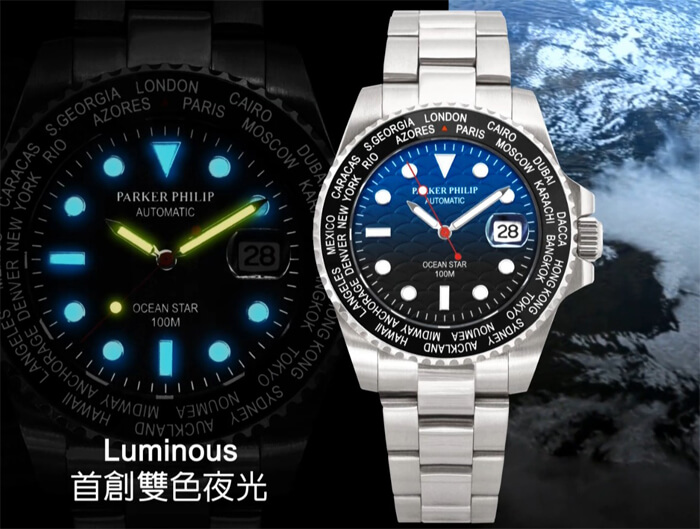 - 面板:立體波浪紋面盤+獨特超大藍夜光點位