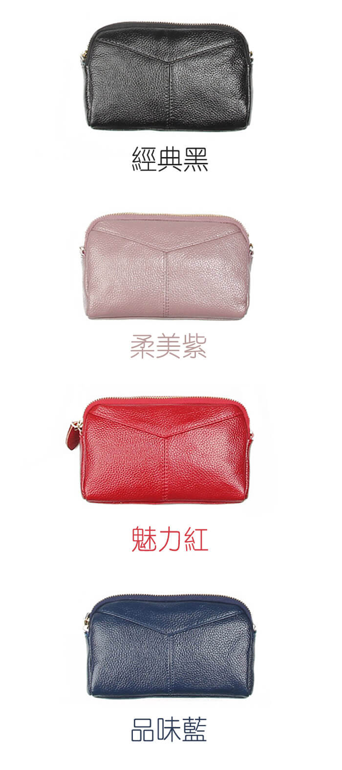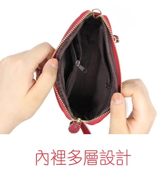 - 主商品尺寸/規格/重量:格層功能表(立體平放測量): 尺寸/CM 左右寬18 x上下高13x 底厚6.5 材質: 牛皮 重量:240g 主夾層 2 內零錢拉鍊袋 2 外側拉鍊袋 1 配件:附1.可卸式手提帶*1條 2.可卸式鍊條斜背帶*1條 揹法:手拿/斜背/側肩背