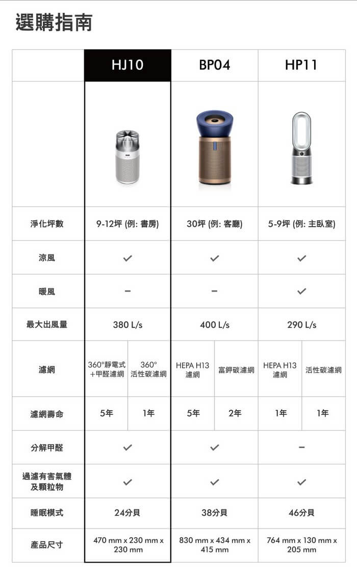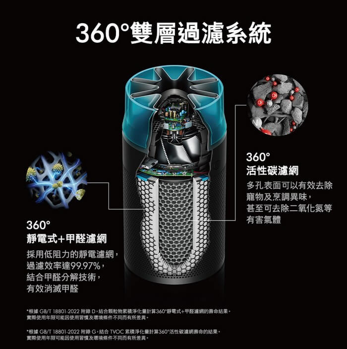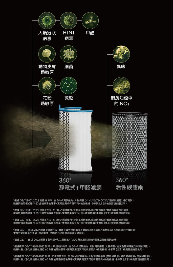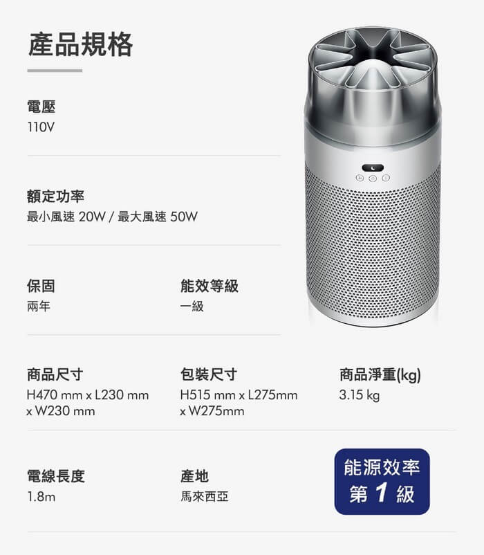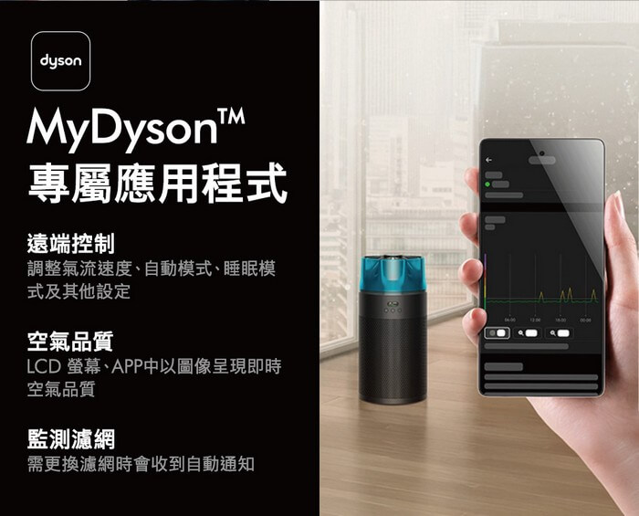 • 贈品:靜電式甲醛濾網x2、活性碳濾網x2、Dyson 1000元禮券x4(鑑賞期過後線上申請)