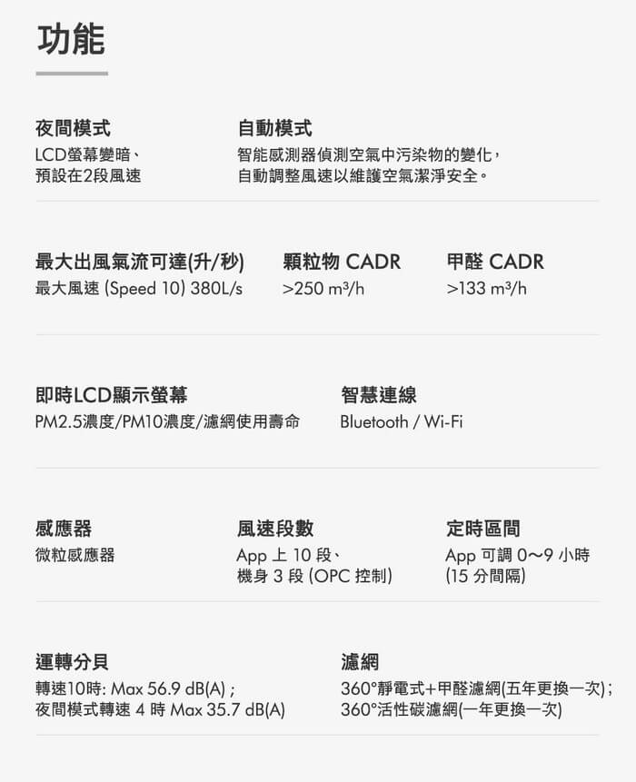 贈品:靜電式甲醛濾網x2、活性碳濾網x2