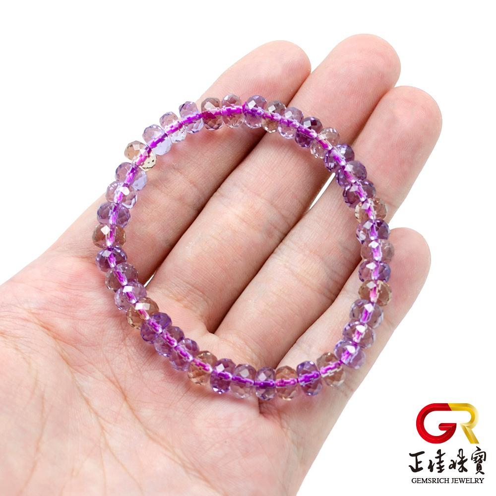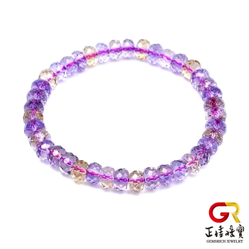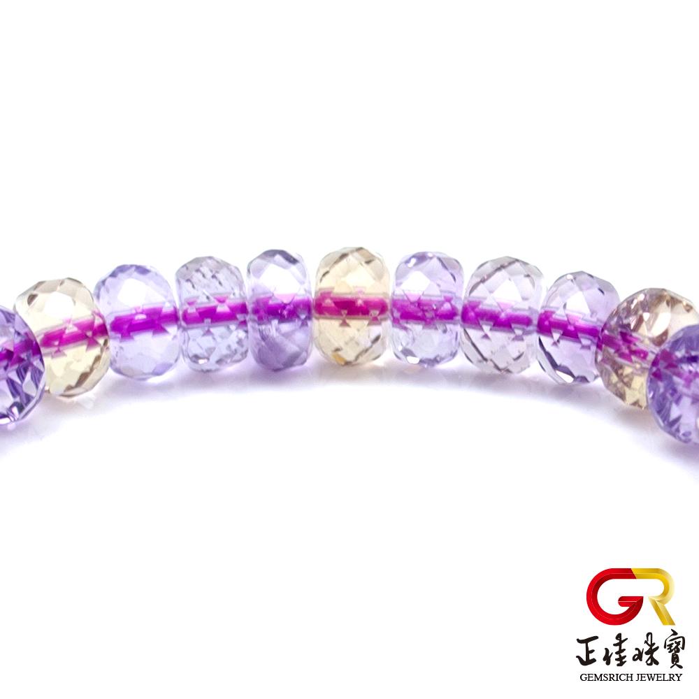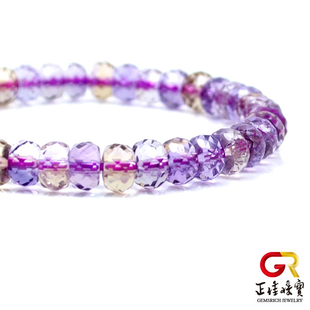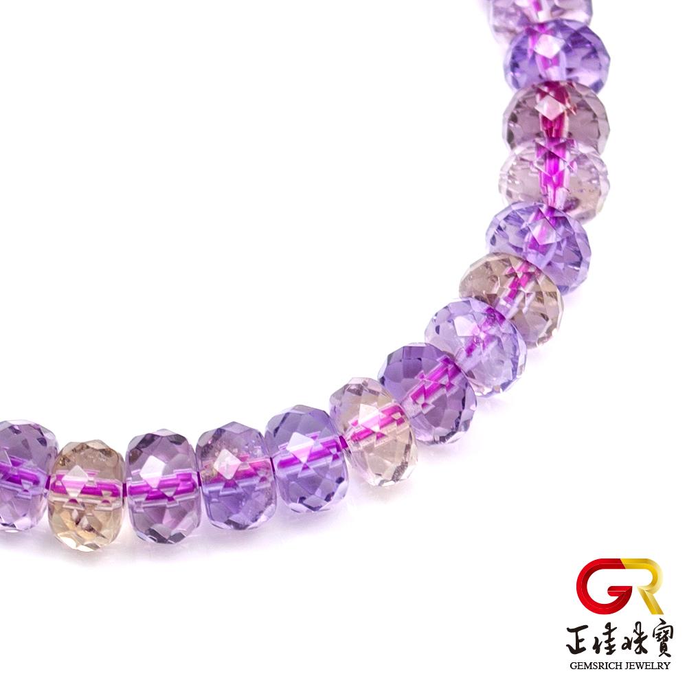 - 主商品:【正佳珠寶】紫黃晶 極品鑽石切面 4x7mm 紫黃晶手珠|日本彈力繩