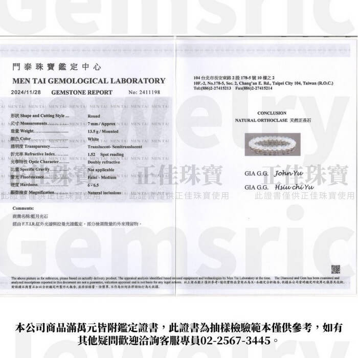 - 材質/食材:藍月光石為歷史悠久寶石之一,遠從埃及時就有人發現月光石的運用,月光石也稱月亮之神的寶石,主要辨別方式為閃光的色澤斷定寶石名稱,如:藍色閃光、白色閃光為主要分類,藍月光的天然結晶敗有淡淡的湛藍光輝是許多人喜愛寶石的特點之一,天然寶石中擁有閃光晶體的為數不少,但要聽瀅透亮的更趨少數。