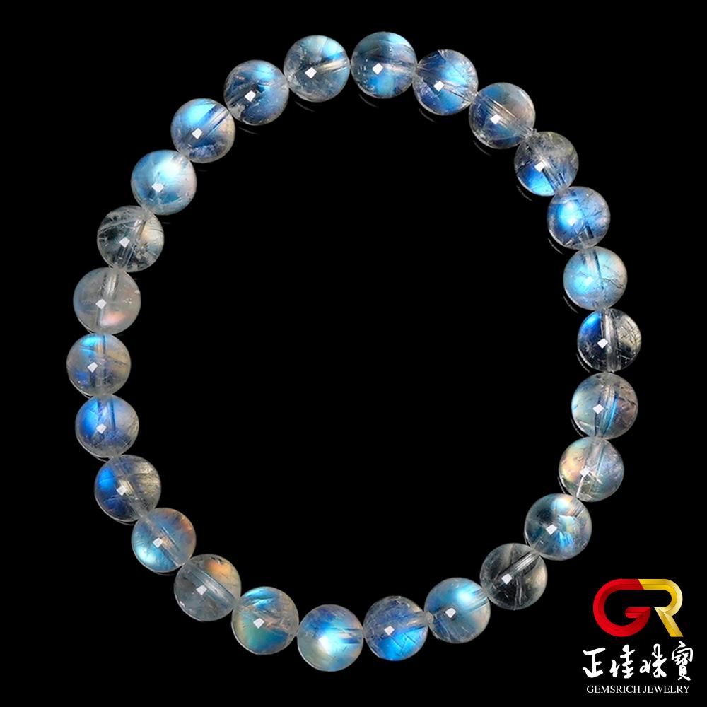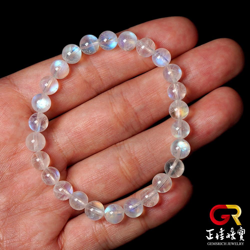 - 主商品:【正佳珠寶】藍月光 頂級冰藍6.8-7.3mm 藍月光石手珠|日本彈力繩