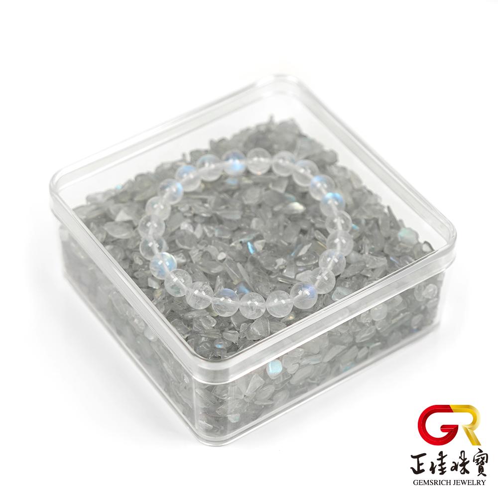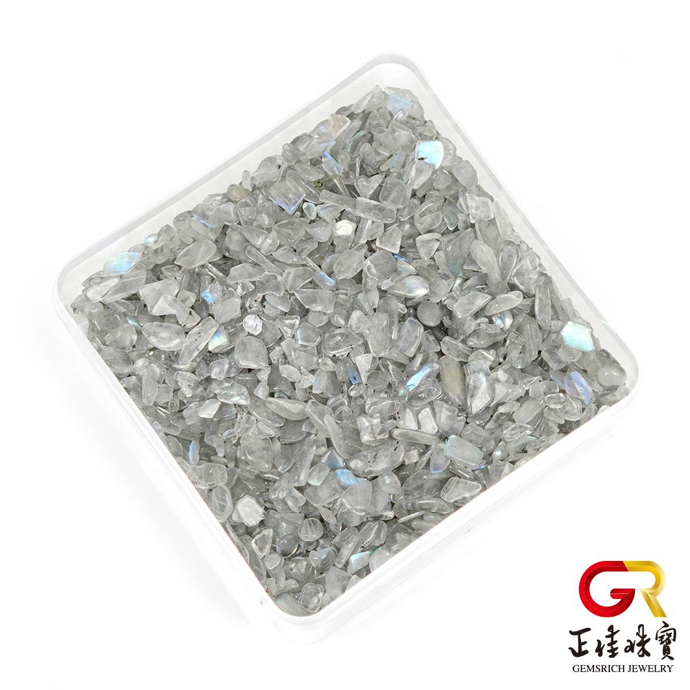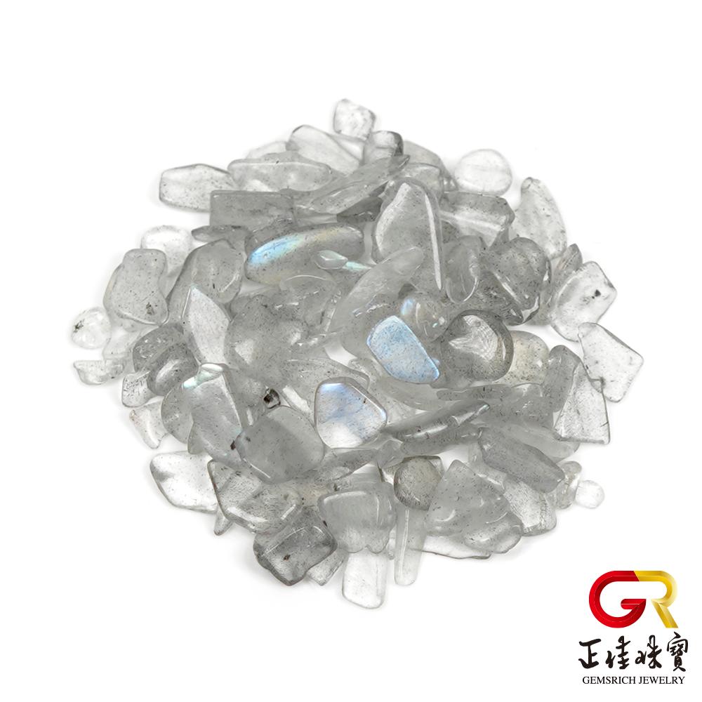 選用拉長石藍灰色底蘊,藍光閃耀光澤點綴原礦。