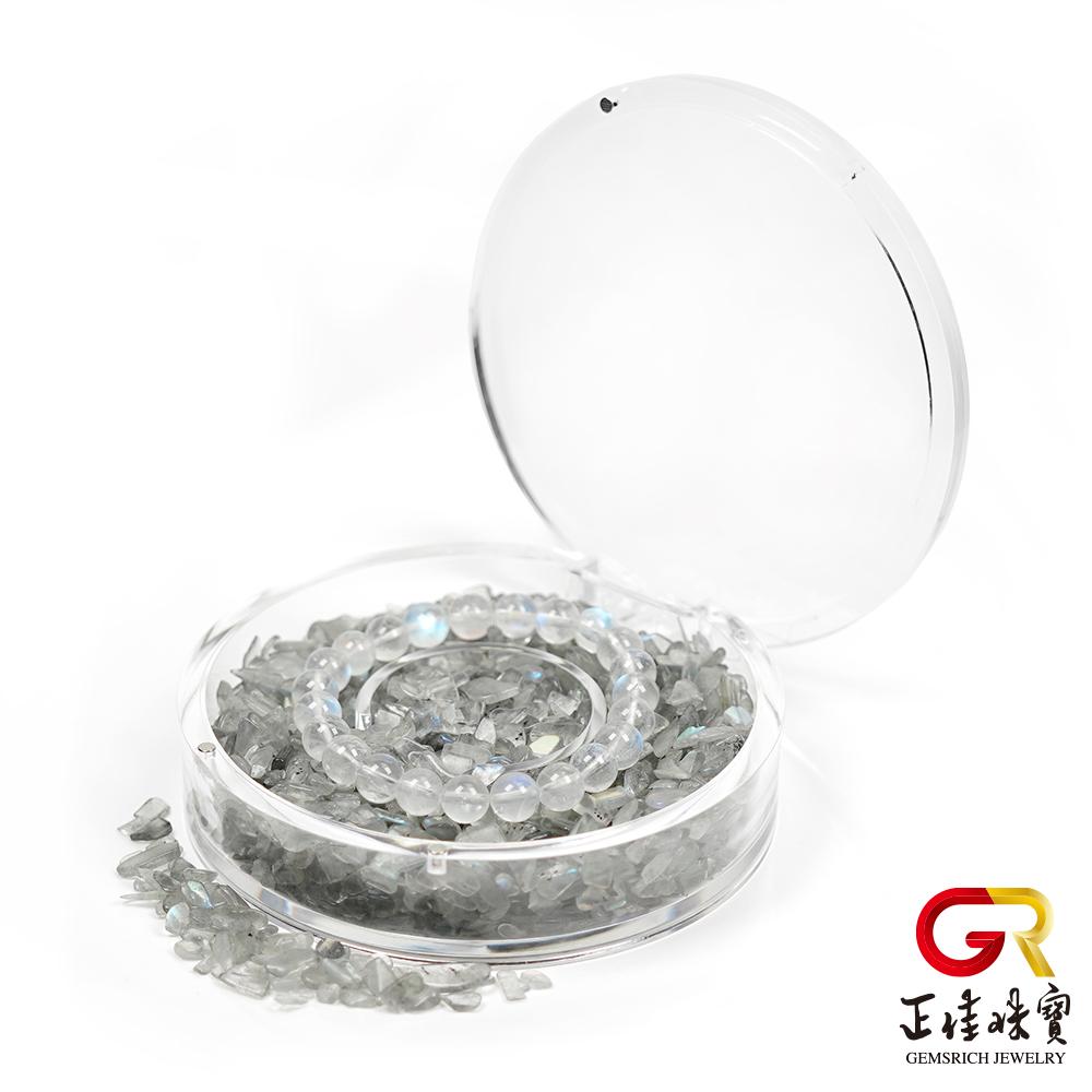 選用拉長石藍灰色底蘊,粒粒展現原礦特色。