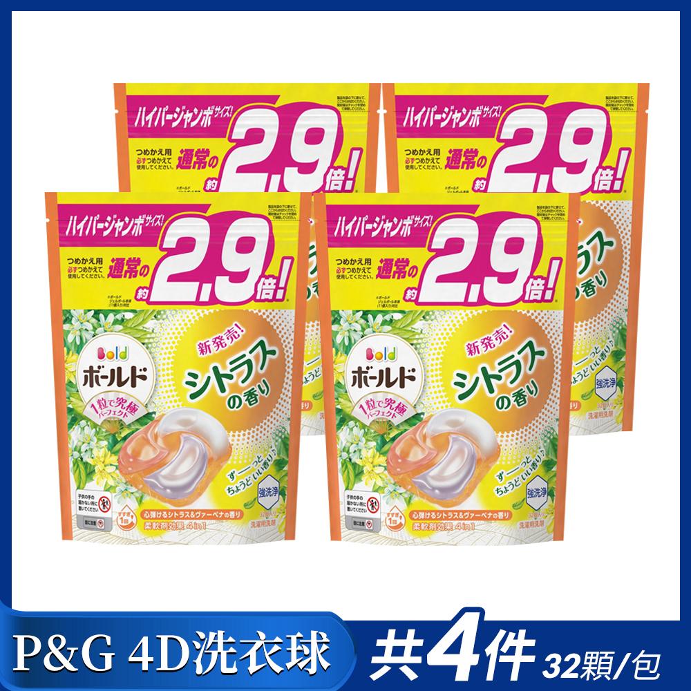 日本P&G 4D碳酸機能洗衣球 室內消臭31入/包(綠)x4包組
