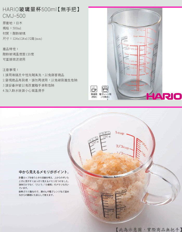 - 主商品:【HARIO】玻璃量杯500/CMJ-500*1