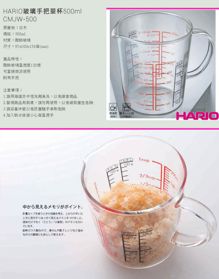 - 主商品:【HARIO】玻璃手把量杯500ml/CMJW-500*1