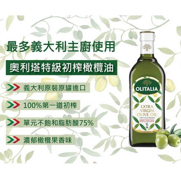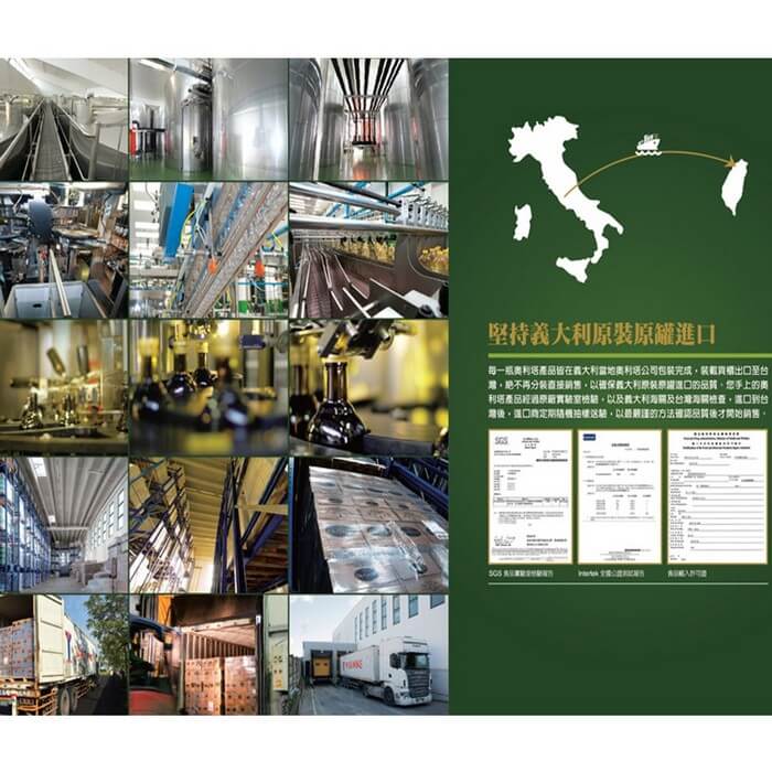 - 材質/食材:100%特級冷壓橄欖油(extra-virgin等級);/義大利Olitalia