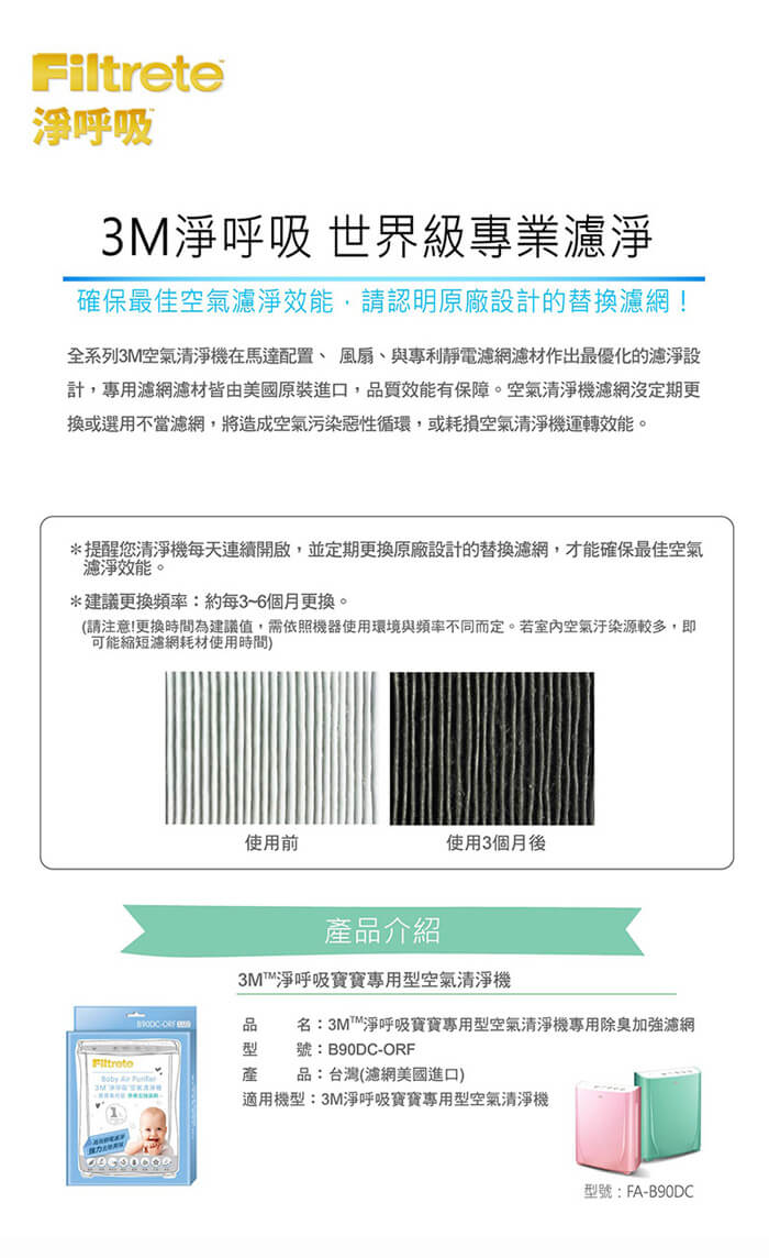 - 主商品尺寸/規格/重量:◆內容物:濾網1片 ◆濾網型號:B90DC-ORF ◆包裝尺寸:(高*寬*深)26*21*4.2 cm ◆商品實際尺寸:(高*寬*深)25.3*20.3*3.5 cm ◆重量:63 g ◆國際條碼:4710367967422 ◆產地:台灣 (濾網材質自美國進口) ◆效期:3年 ◆適用機型:FA-B90DC GN / FA-B90DC PN