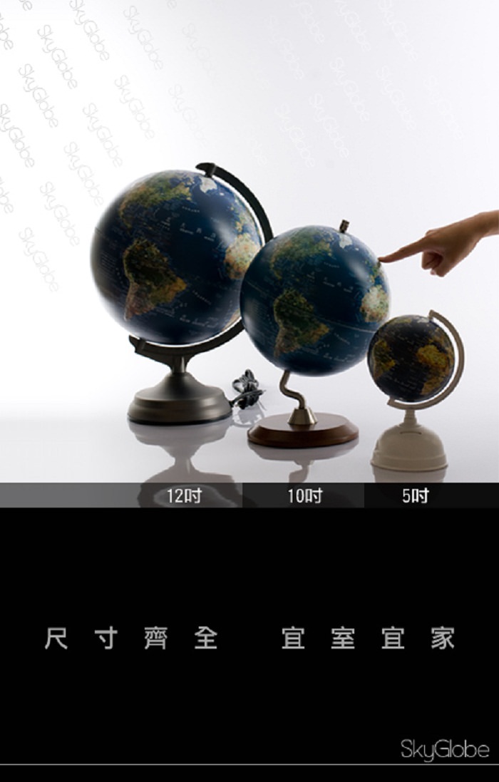 SkyGlobe堅持台灣原創,每年皆採用最新的世界地圖來生產製造,開發不同尺寸與功能,細膩刻劃每個細節,創造美感與實用兼具的地球儀。