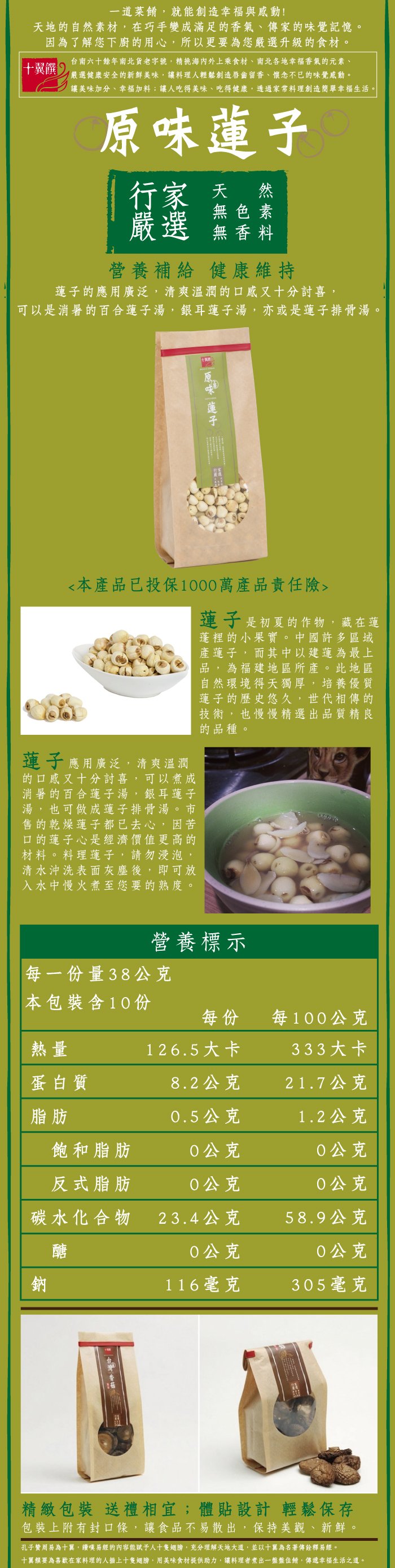 - 主商品:【十翼饌】上等原味蓮子(380gX3包)