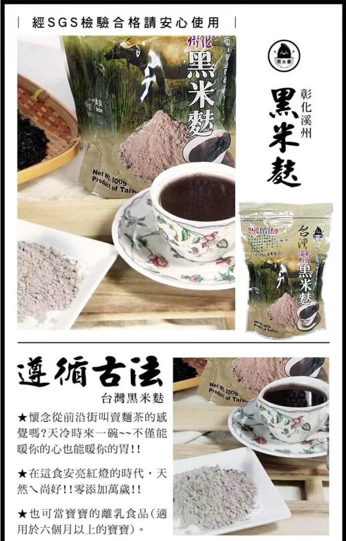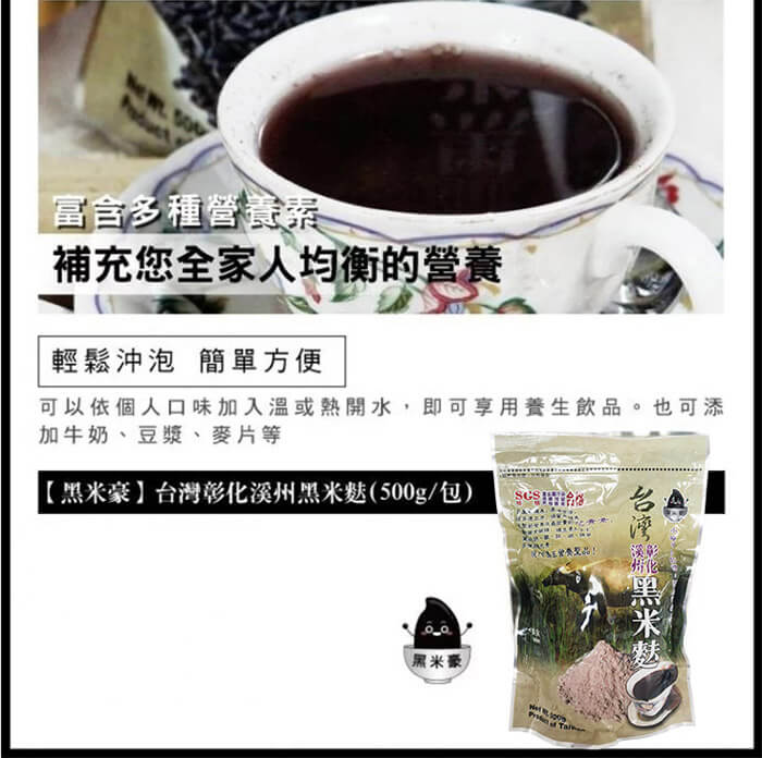 - 主商品:黑米豪 彰化溪州黑米麩x8包(500g/包)