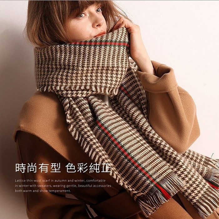 - 主商品:【小魚創意行銷】時尚保暖千鳥格羊絨圍巾-4入組
