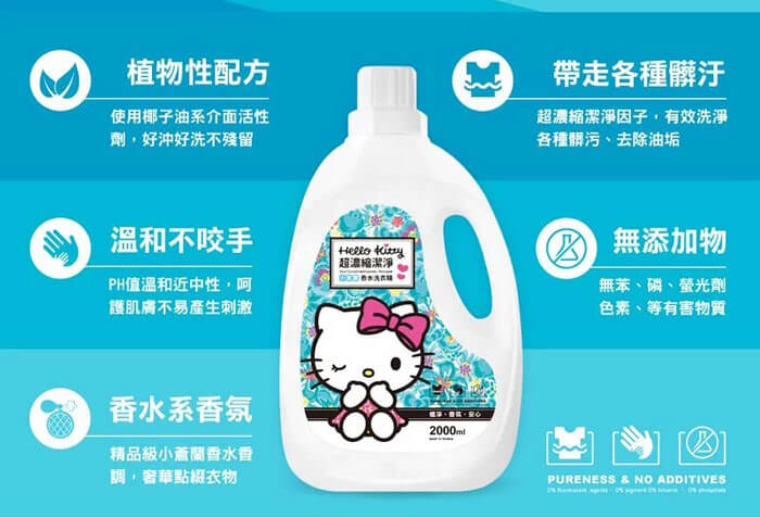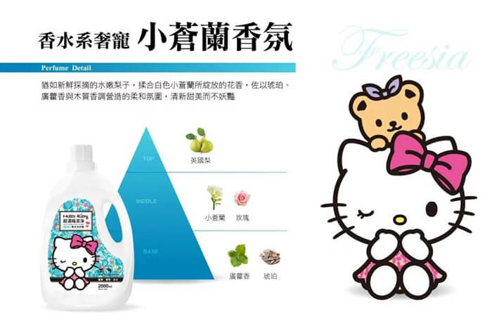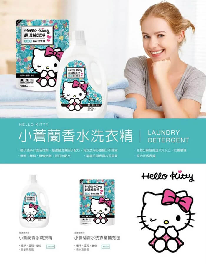 - 主商品:Hello Kitty超濃縮小蒼蘭香水洗衣精(1800ml)*8包 Hello Kitty超濃縮小蒼蘭香水洗衣精(2000ml)*2瓶
