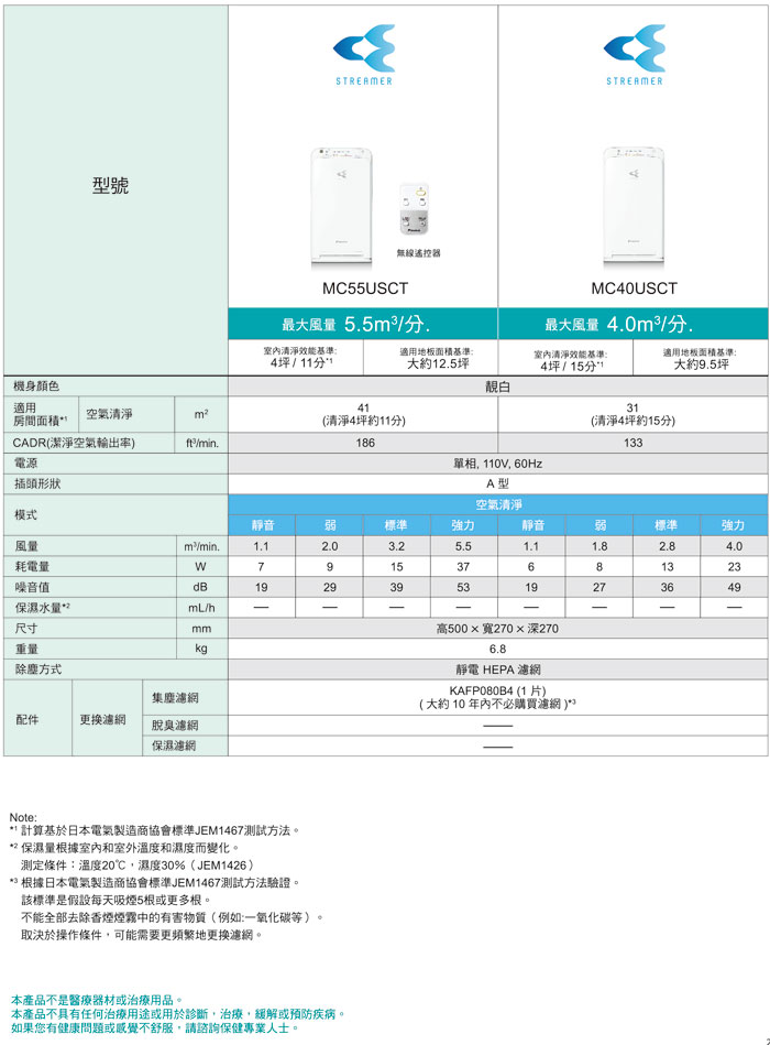 - 主商品:大金簡潔時尚空氣清淨機 MC40USCT