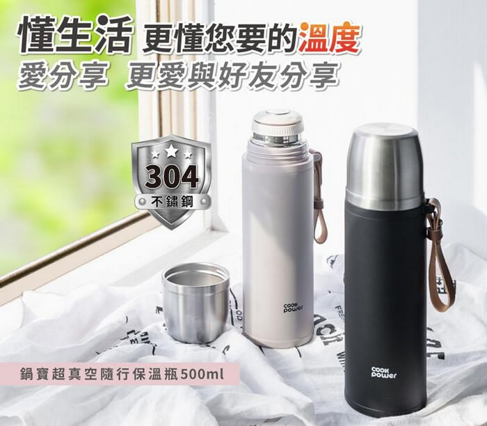 - 主商品:鍋寶 304超真空隨行保溫瓶 500ml(二色可選)