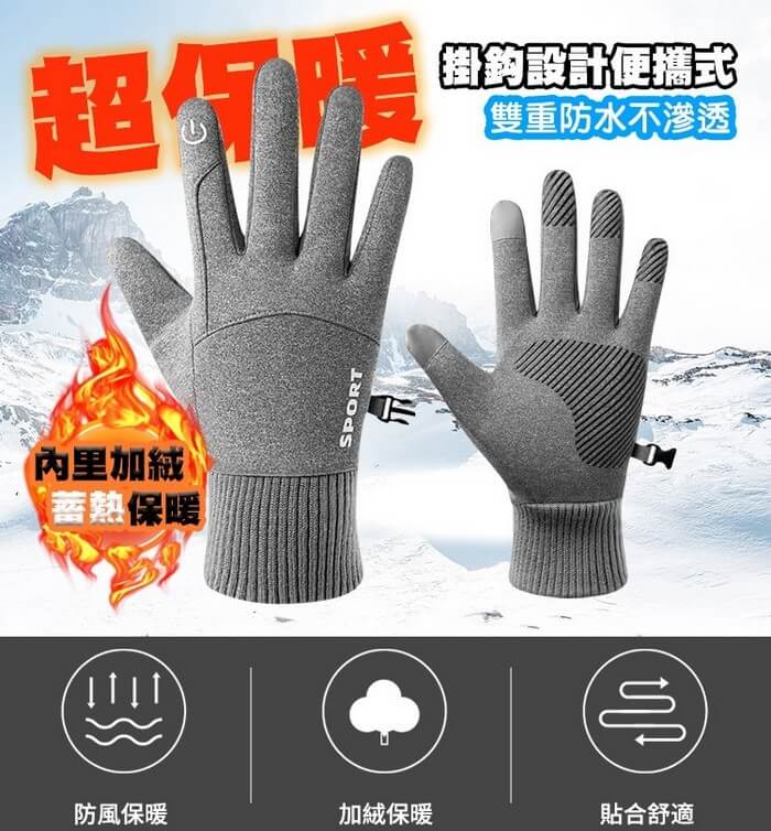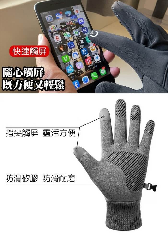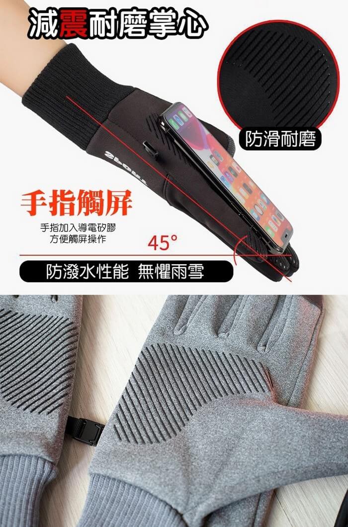 - 主商品:【QiMart】防丟防水指尖觸屏內刷毛登山/騎車手套-8入組