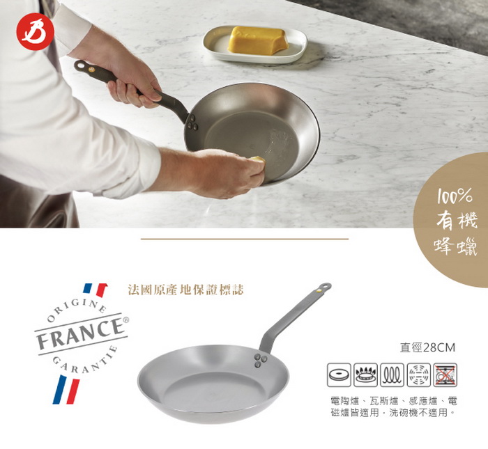 - 主商品:de Buyer 畢耶 原礦蜂蠟系列 傳統單柄平底鍋28cm/鐵鍋 鐵鍋一只;原廠紙袋包裝