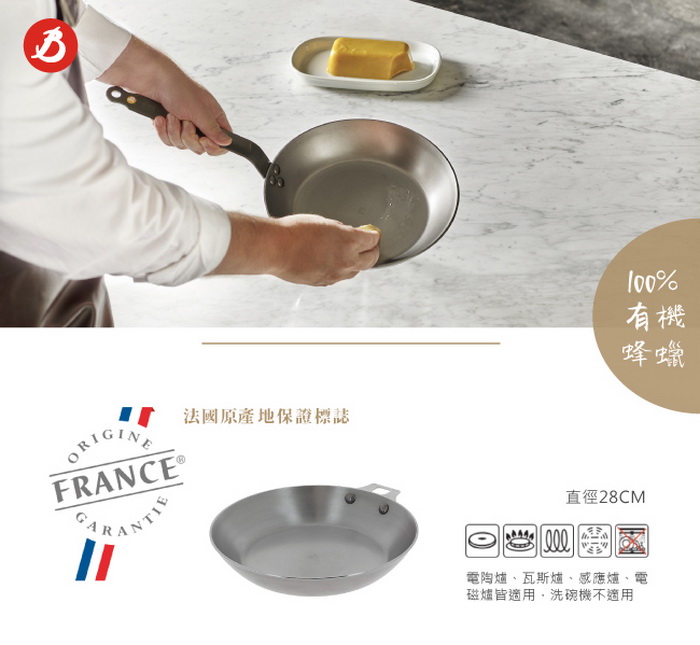 - 主商品:de Buyer 畢耶 原礦蜂蠟活動柄系列 平底鍋28cm/鐵鍋 鐵鍋一只;原廠紙袋包裝