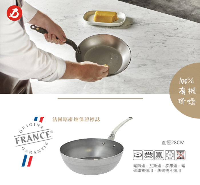 - 主商品:de Buyer 畢耶 原礦蜂蠟系列 職人防滑握柄深煎炒鍋28cm/鐵鍋 鐵鍋一只;原廠紙袋包裝
